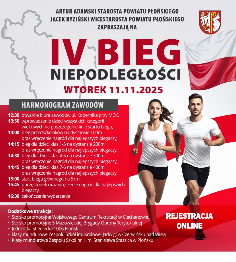 11 listopada przy ulicy Kopernika w Płońsku ponownie zrobi się biało-czerwono. Władze powiat płońskiego zapraszają bowiem i zachęcają do wzięcia udziału w lokalnym IV Biegu Niepodległości. Wiek nie gra roli, wszyscy są mile widziani, aby wspólnie świętować Narodowe Święto Niepodległości. Jeśli jeszcze się nie zapisałeś, zrób to dziś 🙂👍