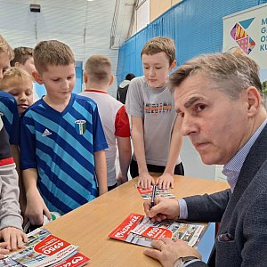 Dariusz Dziekanowski, były piłkarz reprezentacji Polski i Legii Warszawa, spotkał się w Sochocinie z adeptami sportu [fot.: Łukasz Wielechowski]