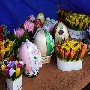 Na stoiskach wybór był bardzo szeroki – zakupić można było wyroby rękodzielnicze, wielkanocne ozdoby w postaci kolorowych pisanek, kurczaczków, baranków i zajączków, ale także nawiązujące do świąt rzeczy robione na drutach. Nie brakowało rzecz jasna słodkości przygotowanych przez panie ze wspomnianych Kół Gospodyń Wiejskich, ale także pasztetów, aromatycznych wędlin własnej produkcji czy gorącego żurku. Podczas kiermaszu datki wrzucane do puszek były zbierane dla dzieci w ogarniętej wojną Syrii.
