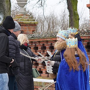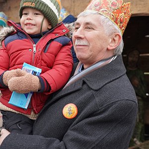 Wśród uczestników nie zabrakło rzecz jasna dzieci w pięknie przygotowanych królewskich strojach. Na głowach mieszkańców pojawiły się wspomniane papierowe korony. Mimo chłodu, orszak w ciepłej, świątecznej atmosferze przeszedł pod ustawioną przy urzędzie bożonarodzeniową szopkę, aby złożyć hołd nowonarodzonemu Jezusowi. Tam wszyscy uczestnicy śpiewali wraz z chórem parafialnym.
