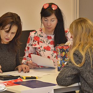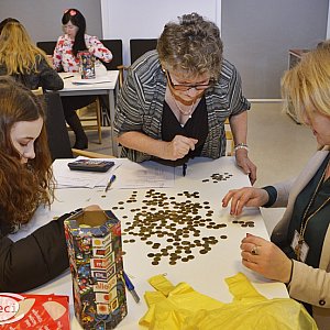 Grupa naszych wolontariuszy oczekująca w holu domu kultury na rozliczenie z komisją [Foto: DT]