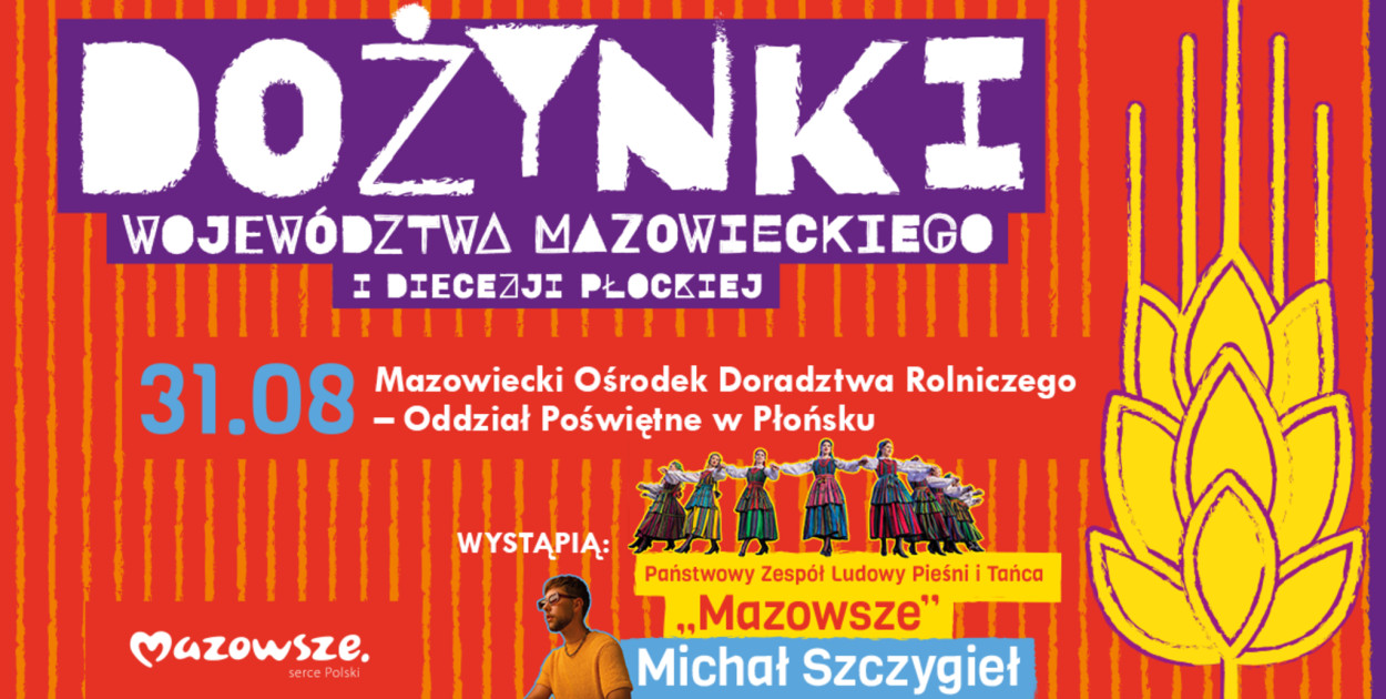 Dożynki Województwa Mazowieckiego i Diecezji Płockiej odbędą się 31 sierpnia na terenie Mazowieckiego Ośrodka Doradztwa Rolniczego – Oddział Poświętne w Płońsku.