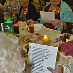 (?) Jak prędko życie mija po prostu żal, a gdyby cofnąć tak na chwilę zegar czasu to coś bym zmienił, tego nie wiem dziś, lecz jedno wiem na pewno nie ważny wiek, ni lata, bo trzeba umieć godnie przez życie iść (?) - to fragment hymnu seniorów, który odśpiewali wspólnie główni bohaterowie spotkania w odnowionej sali Spółdzielni Mieszkaniowej w Płońsku, po czym przyjęli gros życzeń na okoliczność Ogólnopolskiego Dnia Seniora, m.in. od członków Zarządu SM, rady nadzorczej, szefowej MOPS-u oraz samego kierownictwa Klubu Seniora.