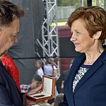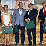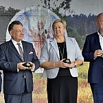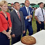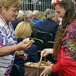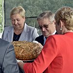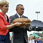 Zaszczyt prowadzenia uroczystego ceremoniału przypadł w udziale starostom dożynkowym ? Monice Piotrowskiej i Bogumiłowi Kowalskiemu. To oni przekazali bochen chleba z tegorocznych plonów gospodarzowi wydarzenia, wójtowi Aleksandrowi Jarosławskiemu, a potem podzieli chleb ? najważniejszy symbol dożynek ? i wspólnie z dziewczętami ubranymi w stroje ludowe częstowali nim zaproszonych gości oraz mieszkańców okolicznych wiosek i powiatu płońskiego.