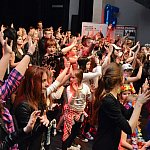 W ,,Niekończącej się opowieści..." wzięło udział aż 180 artystów od lat 4 do 74: uczniów nauczycieli, absolwentów, przyjaciół ,,Nutki" i gości specjalnych. - To nasze wspólne dzieło - podkreślała Marzena Kunicka, zawiadująca od samego początku tą prężnie rozwijającą się szkołą.