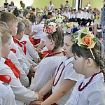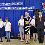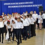 Szkolne wydarzenie rozpoczęło się od dźwięków poloneza, którego odtańczyli trzecioklasiści. Zgromadzonych gości oraz uczniów i rodziców powitała Teodozja Gorlewska, dyrektorka ,,trójki". Wspominała ona szczególnie lata -60-te, kiedy to po przenosinach na ulicę Płocką, już do własnej siedziby, po dwóch latach od tejże przeprowadzki, w 1969 roku, w setną rocznicę urodzin Stanisława Wyspiańskiego, placówce nadano jego imię.