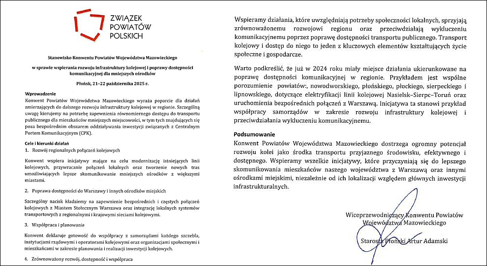 • w sprawie wspierania rozwoju infrastruktury kolejowej i poprawy dostępności komunikacyjnej dla mniejszych ośrodków