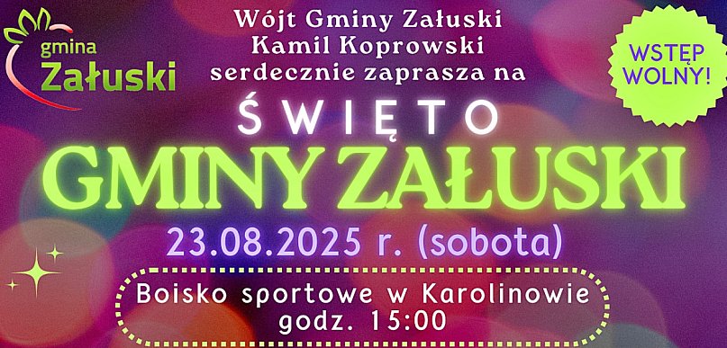 W sierpniową sobotę, dwudziestego trzeciego, zarezerwujcie sobie czas na imprezę w plenerze, którą organizuje samorząd Gminy Załuski. Nie zabraknie oczywiście atrakcji dla najmłodszych, kulinarnych warsztatów, stref gastronomicznych oraz muzycznych występów. Na scenie zobaczymy m.in. takie zespoły jak Iness i Joker. Przewidziana jest również między pokoleniowa potańcówka, czyli zabawa z DJ-em. Szczegóły wydarzenia, które rozpocznie się o godzinie 15, znajdziecie na plakacie 🙂.