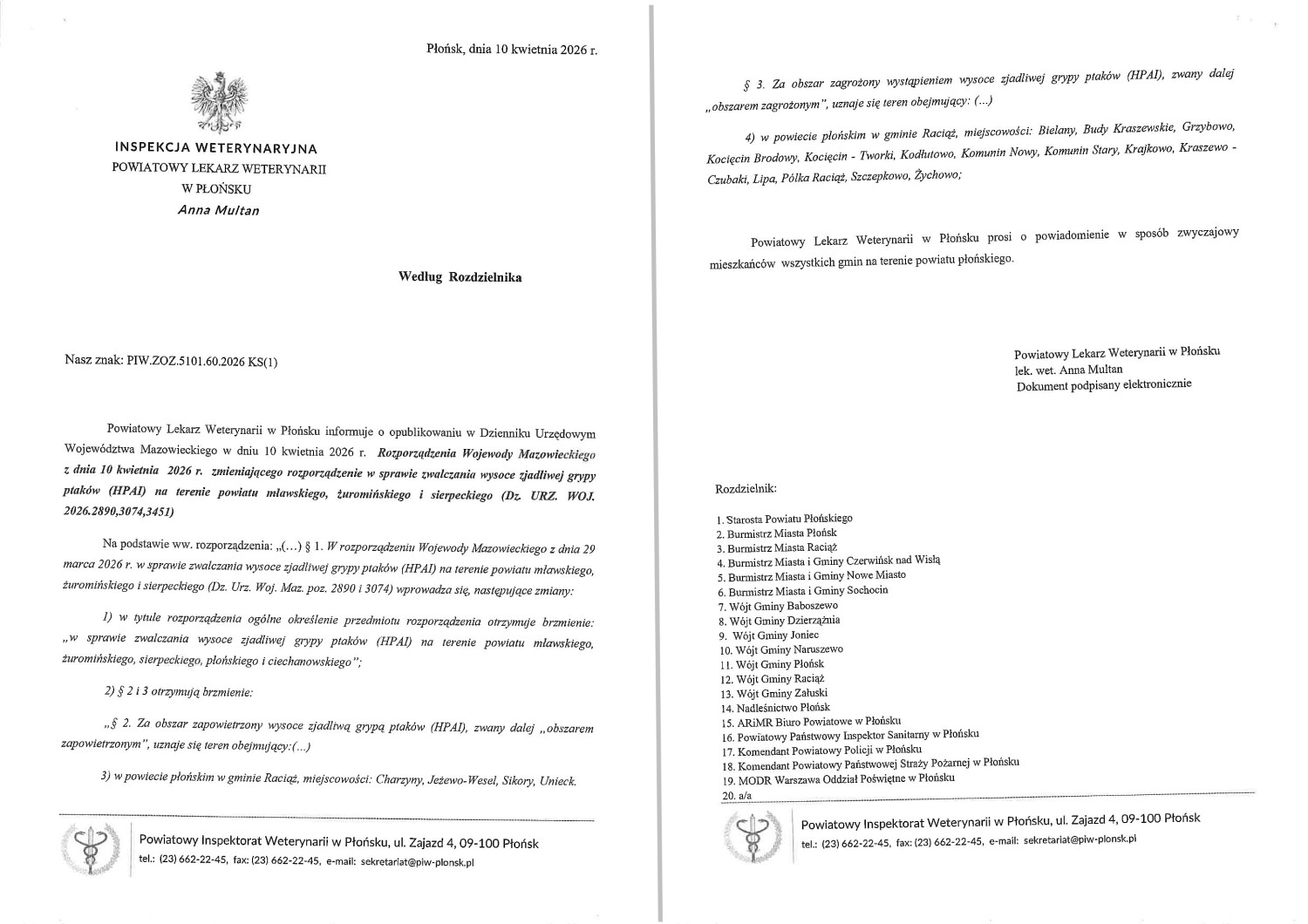 Wszelkie informacje zawarte w rozporządzeniu przekazał w swoim komunikacie także Powiatowy Lekarz Weterynarii w Płońsku.