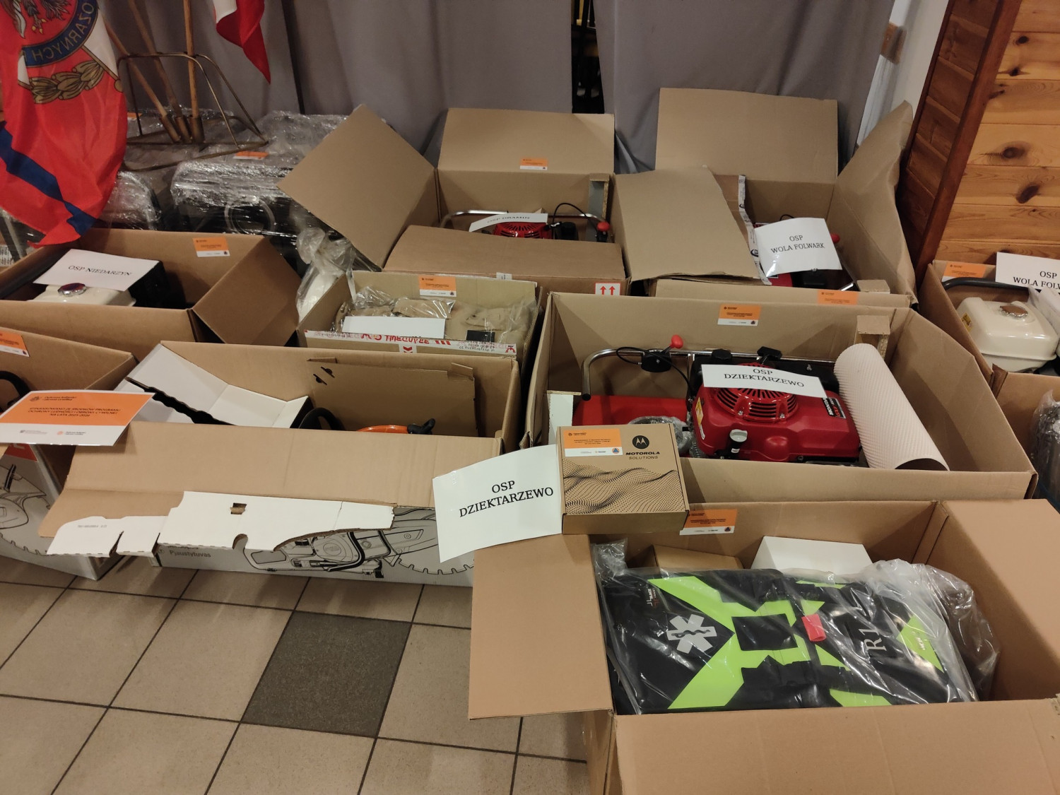 Jednym z głównych zadań jest doposażenie magazynu oraz jednostek OSP w sprzęt do realizacji zadań ochrony ludności i obrony cywilnej. W tym celu zakupiono: aparaty oddechowe, radiotelefony przenośne, agregaty prądotwórcze, motopompy pływające, pompy do wody zanieczyszczonej, latarki, plandeki, torbę PSP, pilarkę spalinową, pilarkę ratowniczą, piłę do stali i betonu, ubrania specjalne, przenośny SUW oraz zbiornik na paliwo. Łączna wartość zakupów to 261 071,23 zł.