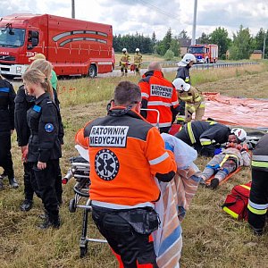 Na drodze serwisowej przy trasie S7 w okolicy Poświętnego dochodzi do zderzenia osobówki z lawetą, a na domiar złego w zdarzeniu uczestniczą jeszcze pasażerowie (uczniowie klas mundurowych ZS nr 1 w Płońsku) autobusu, który z impetem uderzył w auto. Jest wielu rannych, którzy potrzebują szybkiej pomocy. Na miejsce przyjeżdżają ratownicy medyczni, jednostki straży pożarnej oraz policja. Są też członkowie Powiatowego Zespołu Zarządzania Kryzysowego. Zostają zastosowane konkretne procedury działania. To na szczęście tylko scenariusz czwartkowych ćwiczeń. Relację foto-video Pawła Nagadowskiego prezentujemy poniżej.