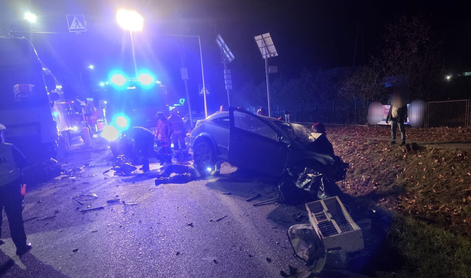 Dowiadujemy się, że kierowca opla był zakleszczony w pojeździe. Na miejscu, po rannego, lądował śmigłowiec Lotniczego Pogotowia Ratunkowego.