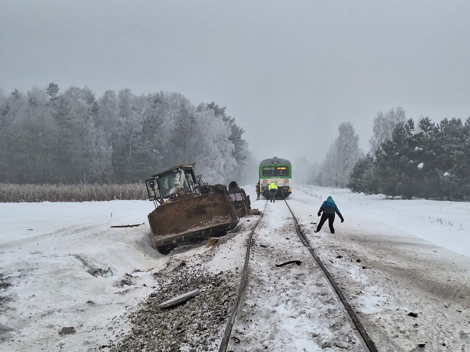W środę rano na niestrzeżonym przejeździe kolejowym w rejonie miejscowości Krępica (gm. Płońsk) doszło do zderzenia szynobusu relacji Nasielsk-Sierpc z koparko-ładowarką, przekazuje płońska policja.