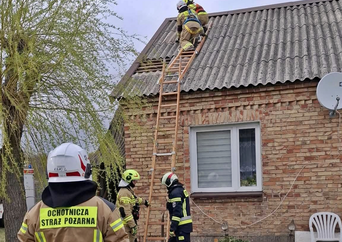 Z kolei przed godziną 17 służby wezwano do Smardzewa (gmina Sochocin), gdzie porywisty wiatr zerwał z domu część dachu krytego eternitem. - Wiatr zerwał dwa arkusze eternitu, a w sumie uszkodzeniu uległo ich osiem. Ten fragment dachu przykryto plandeką - dodaje st. bryg. Majewski.