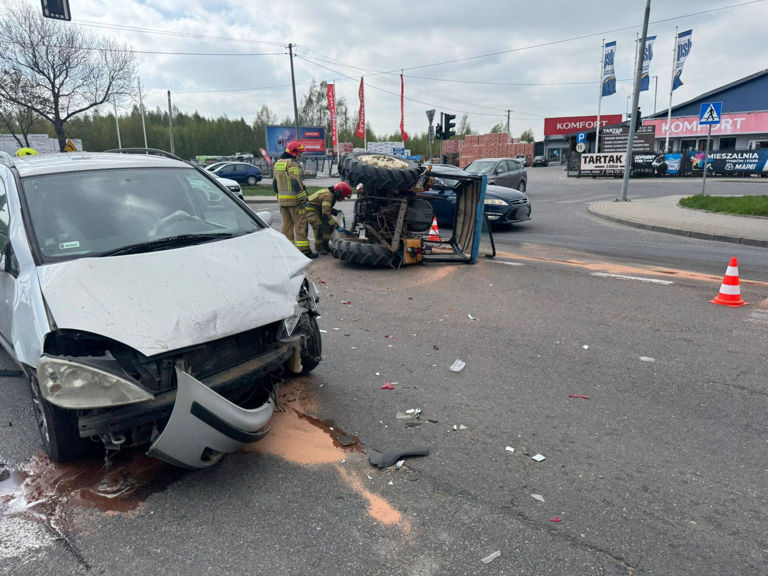 W sobotę przed godziną 14 w miejscowości Bońki (trasa DK50), na skrzyżowaniu ulic, doszło do zdarzenia z udziałem dwóch samochodów osobowych oraz ciągnika rolniczego.