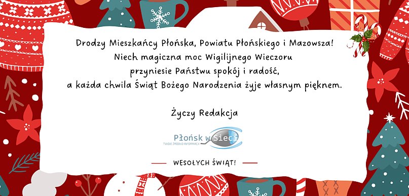 Naszym Czytelnikom, Współpracownikom i Partnerom biznesowym - Reklamodawcom, jak i Ogłoszeniodawcom - oraz wszystkim Tym, którzy na co dzień wspierają nas w tworzeniu serwisu ''Płońsk w Sieci'' i są nim żywo zainteresowani, nasza redakcja życzy udanych, wspaniałych Świąt Bożego Narodzenia. Najserdeczniejsze życzenia, również te noworoczne, przekazują Wam też licznie za naszym pośrednictwem lokalne samorządy, samorządowcy, parlamentarzyści, instytucje i firmy, łącząc serdeczne pozdrowienia 🎅🎉😊🤝.