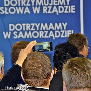 Spotkanie z premierem zorganizowano w sali Mazowieckiego Ośrodka Doradztwa Rolniczego na Poświętnem, która szybko zapełniła się po brzegi sympatykami strony rządowej i kandydata na szefa ratusza w nadchodzących wyborach samorządowych. Marcin Kośmider pokrótce przedstawił swe założenia programowe.