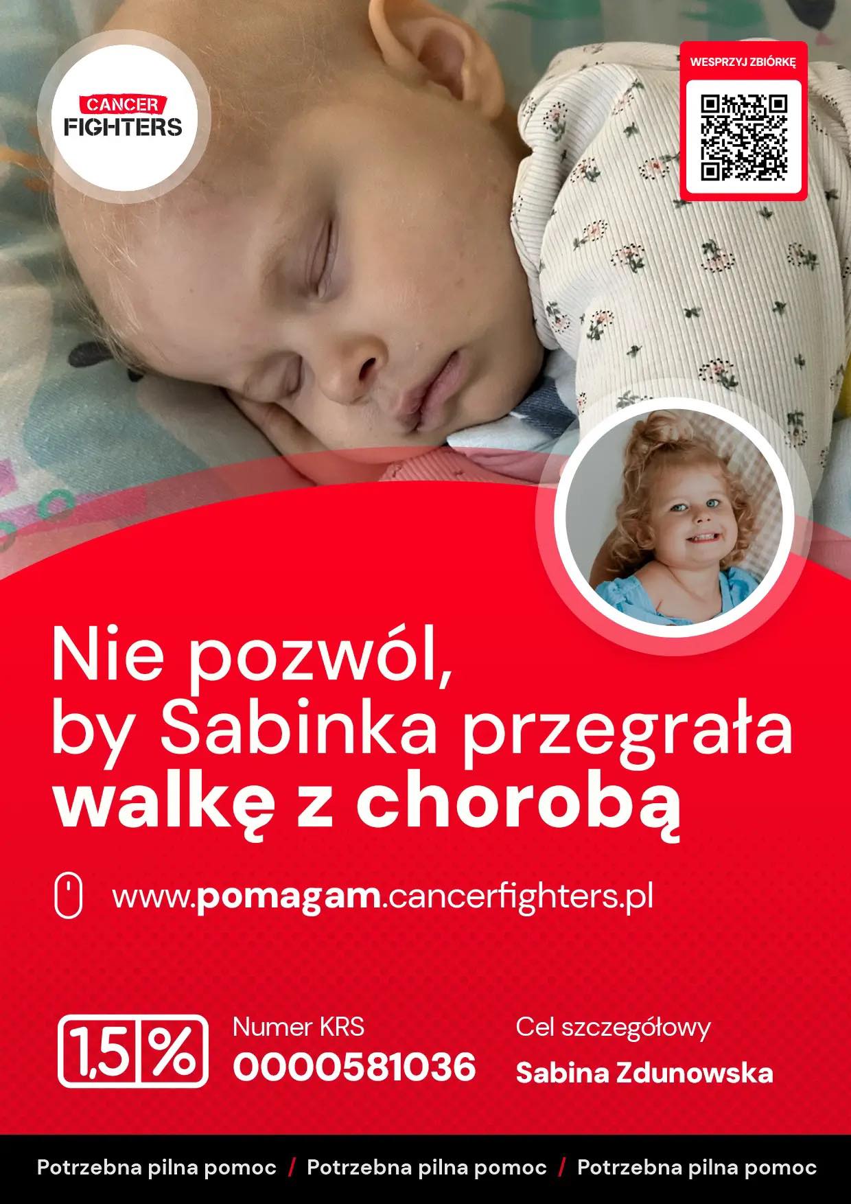 Zebrane środki pokryją koszty leków, opieki lekarskiej, przyszłej rehabilitacji oraz bieżących potrzeb związanych z leczeniem Sabinki. To pomoc, która pozwala działać natychmiast i bez zwłoki. W chorobie nowotworowej każdy dzień i każda decyzja mają ogromne znaczenie.